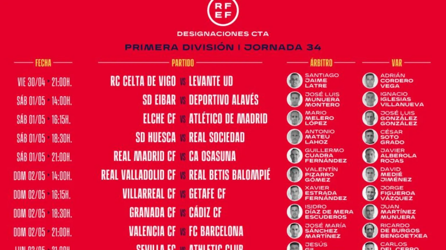 El lorquino arbitrará uno de los partidos importantes de la jornada 34 de Liga. El duelo se disputará en Mestalla, el domingo a las 21.00 horas.