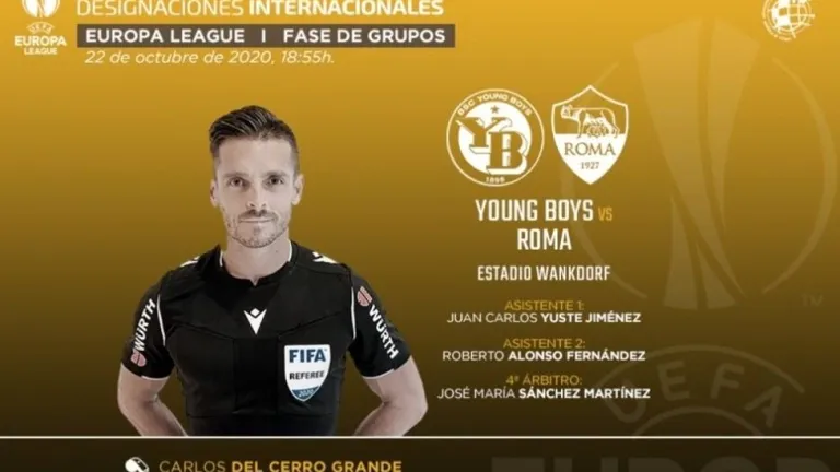 El colegiado internacional José María Sánchez Martínez regresa esta semana a Europa. El trencilla lorquino que fue VAR en el encuentro entre el Huesca y el Valladolid que terminó con empate a dos en el marcador, actuará de cuarto árbitro en el primer partido del grupo A de la Europa League que jugarán el Young Boys de Suiza y la Roma. El encuentro será dirigido por Carlos del Cerro Grande y se disputará este jueves a las 18.55 horas en el estadio Wankford.
