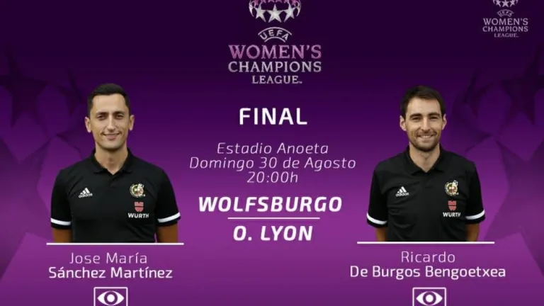 UEFA ha anunciado que la final del Champions femenina que se va a disputar en el estadio de Anoeta entre el Wolfsburgo y el O. Lyon tendrá en el VAR a dos colegiados españoles acompañando a la colegiada suiza Esther Staubli. José María Sánchez Martínez actuará como VAR y Ricardo De Burgos Bengoetxea como AVAR.