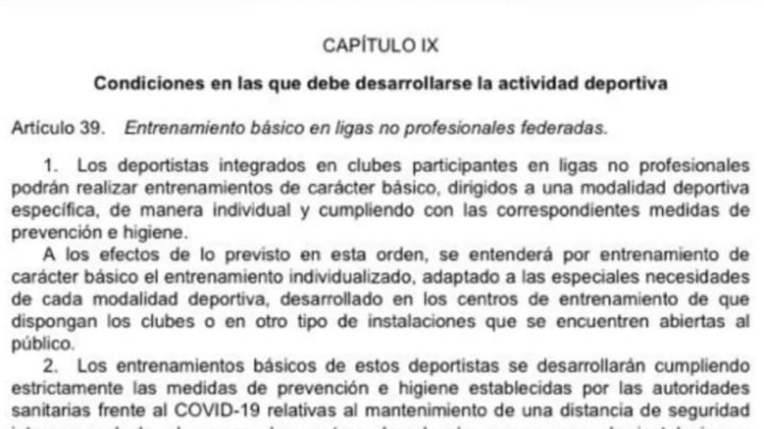 Según el texto, también amplia que "a los efectos de lo previsto en esta orden, se entenderá por entrenamiento de carácter básico, el entrenamiento individualizado, adaptando las necesidades de cada modalidad deportiva, desarrolado en los centros de entrenamiento de que dispongan los clubes o en otro tipo de instalaciones que se encuentren abiertas al público".