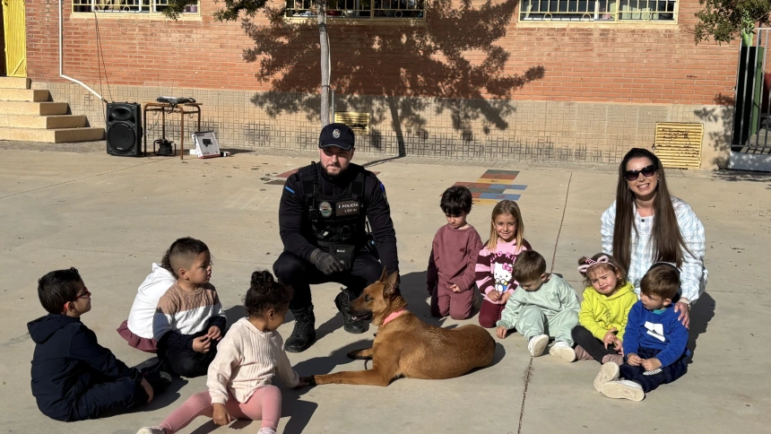 La Unidad Canina de la Policía Local de Águilas ha comenzado una ronda de visitas a los colegios del municipio, una actividad impulsada por las concejalías de Seguridad Ciudadana y Educación. El objetivo es acercar la figura del agente a los escolares desde edades tempranas de una forma atractiva, contando con la participación de los perros policía Ares y Loba.