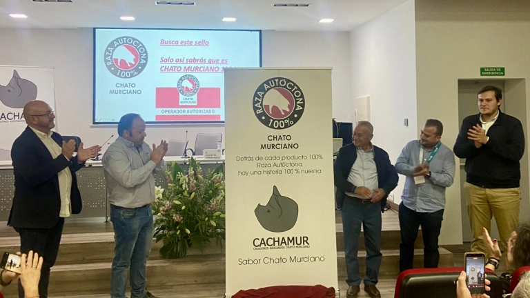 La asociación de criadores de cerdo chato murciano, Cachamur, ha conseguido el sello de calidad '100% Raza Autóctona' que concede el Ministerio de Agricultura, Pesca y Alimentación. El nuevo distintivo ha sido presentado oficialmente en el marco de la 58ª edición de la feria ganadera Sepor de Lorca.