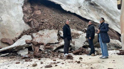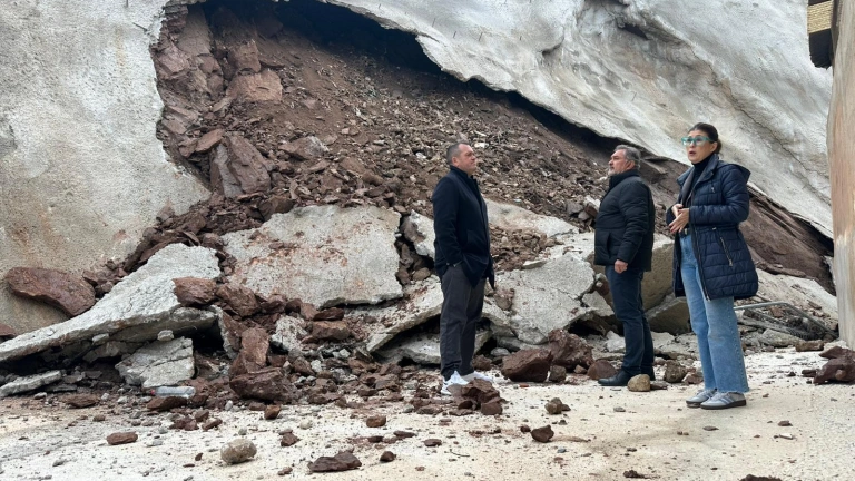 Concejales supervisan el derrumbe de un talud el día del desplome