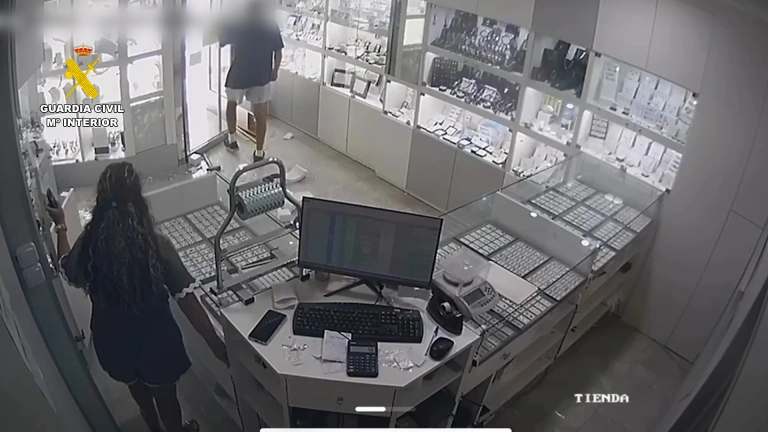 Las grabaciones de las cámaras de seguridad de la joyería evidencian como uno de los ladrones entra a cara descubierta haciéndose pasar por un cliente para distraer a la dependienta.