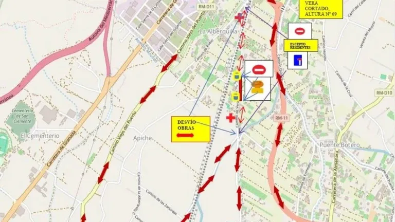 Para los procedentes de RM-D11 con sentido Centro Comercial Almenara, Camino Viejo del Puerto, Camino Real de Vera, el itinerario alternativo paso por Ronda Sur- RM-D11, Centro Comercial Almenara, Camino de En medio, con reincorporación a Camino Real de Vera, Puente Pasico, Camino Zahurdas, Ctra. La Estación, RM-D11 o viceversa sentido centro ciudad.