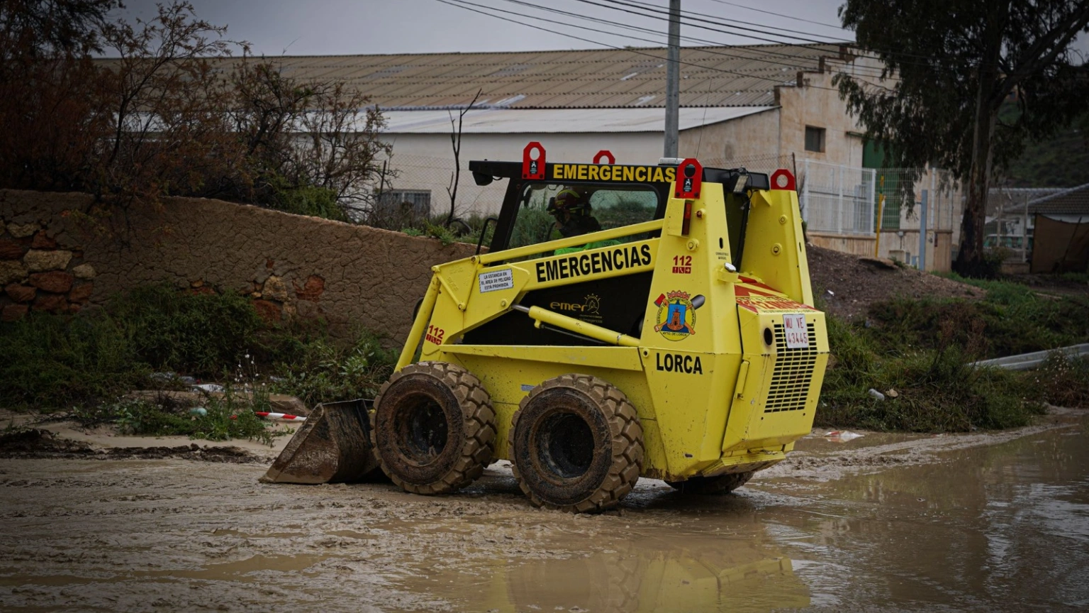 Medios del servicio de Emergencias de Lorca durante una dana en 2025