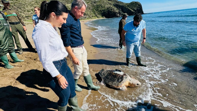 El ejemplar fue rescatado en La Manga del Mar Menor con graves lesiones y derivado al Centro de Recuperación de la Fauna Silvestre de El Valle, dependiente del Gobierno de Murcia, cuyo presidente ha asistido a la suelta