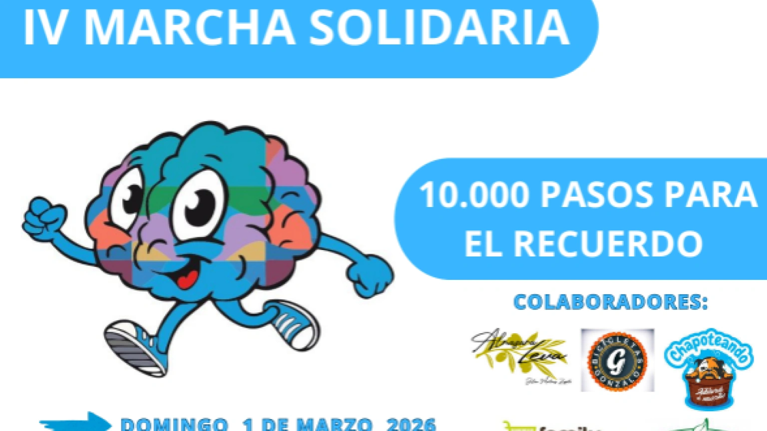 La Asociación Alzhéimer y Otras Demencias Lorca ha organizado la IV Marcha Solidaria "10.000 pasos para el recuerdo". Este evento está programado para el domingo 1 de marzo de 2026 y busca ofrecer una oportunidad para que cualquier ciudadano interesado pueda unirse y compartir esta experiencia de apoyo.