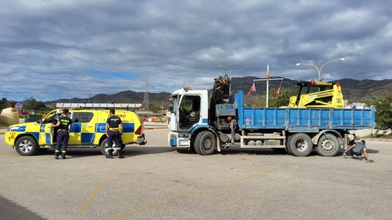 El Ayuntamiento de Lorca ha enviado un camión autobomba y una miniexcavadora del Servicio Municipal de Emergencias, con su correspondiente personal, a la localidad de Águilas para sumarse a las tareas de limpieza de la ciudad tras las lluvias torrenciales que la inundaron en la madrugada del martes.