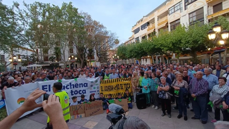 Convocados por la Federación Espartaria y la Plataforma por la Calidad del Paisaje los vecinos desplegaron dos grandes pancartas con el lema 'El Luchena no se toca' y dieron lectura a un manifiesto en el que reclamaron a la Confederación Hidrográfica del Segura (CHS) la retirada de la concesión de agua a la Comunidad de Regantes de Lorca del manantial del Luchena. En la concentración se dieron cita unas 500 personas según fuentes policiales y miembros de las plataformas que convocaron la concentración.