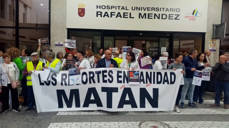 Tras una pancarta con el lema "Los recortes en sanidad matan", los sanitarios han llevado a cabo el nuevo acto de protesta en coincidencia con la reunión del consejo de administración del Servicio Murciano de Salud en la que se ha autorizado la contratación de 13 nuevos trabajadores.