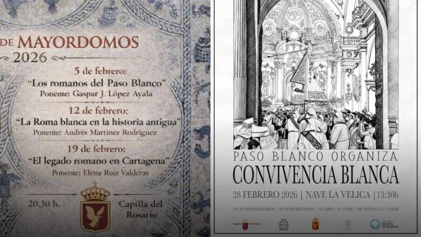 El Paso Blanco ha presentado su agenda de actividades para el mes de febrero, que incluye la nueva edición de la Escuela de Mayordomos, centrada este año en el legado del mundo romano, y una jornada de convivencia abierta a todos los simpatizantes de la cofradía.