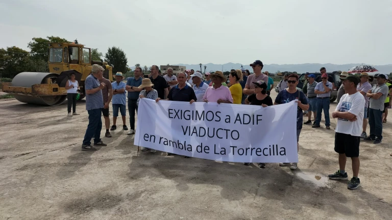 Vecinos de las pedanías lorquinas de Campillo y Torrecilla han exigido esta mañana a ADIF la construcción de un viaducto sobre la Rambla de Torrecilla