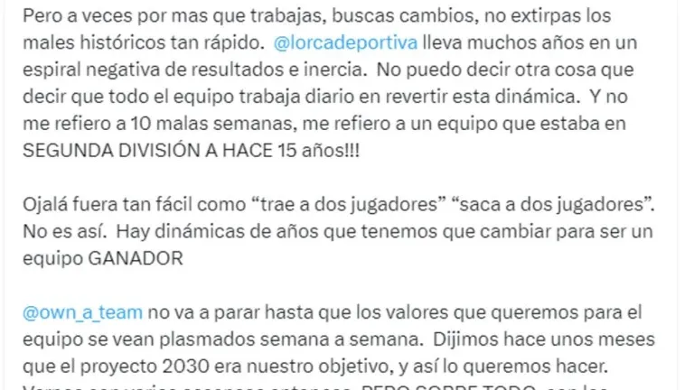 Además de esos comunicados, el último en hacerse oficial ha sido desde la cuenta del propio club en X. Este último comunicado incide en que "no se va abandonar ni arrojar la toalla"