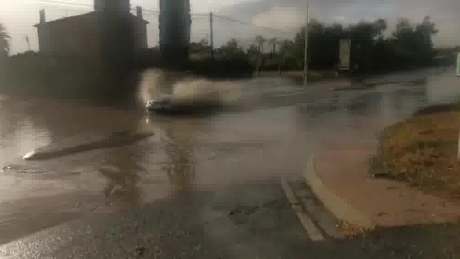 Antigua Carretera de Águilas anegada de agua en varias zonas