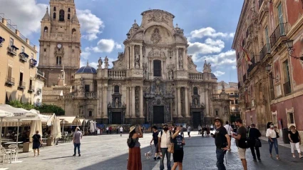 Oficina de Turismo de Murcia, turistas y Bartolomé Vera, presidente Asociación Hoteleros