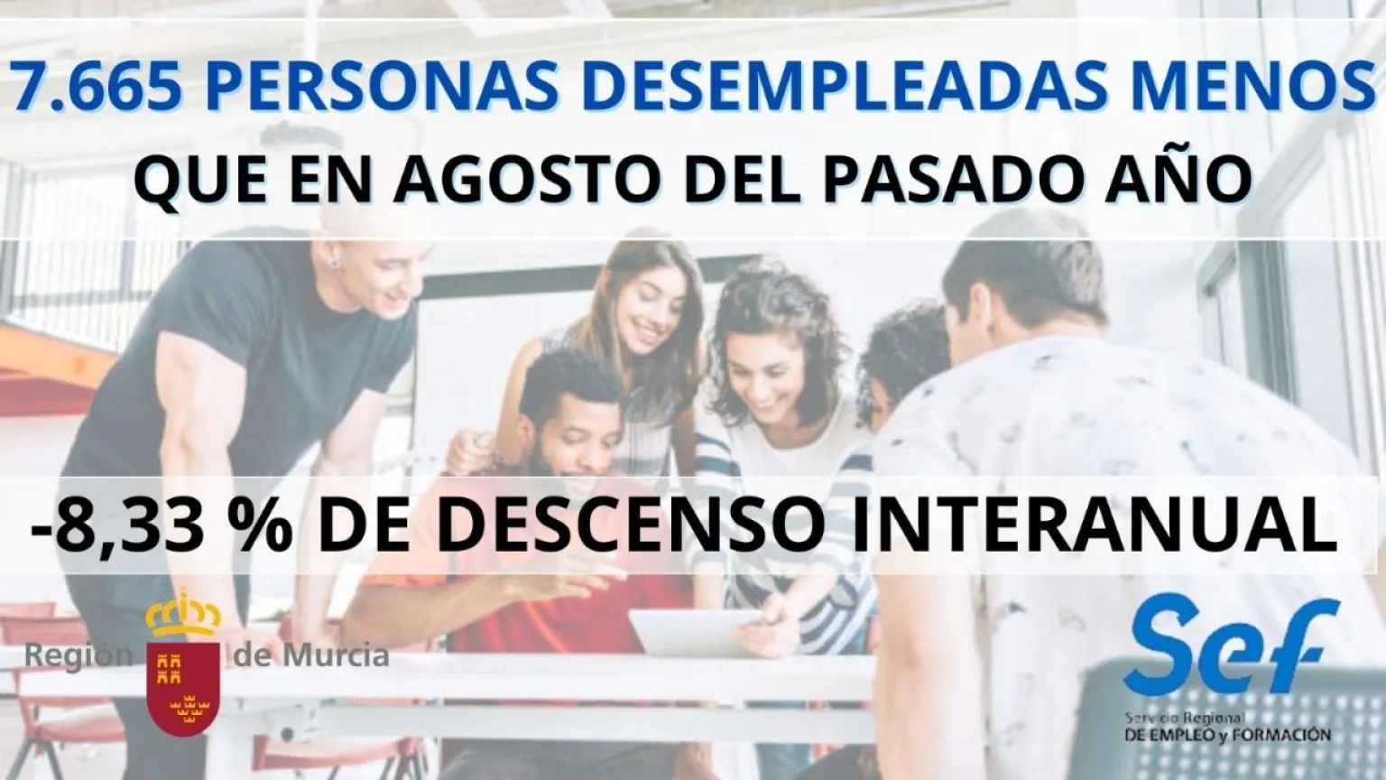 La Región registró el pasado mes 7.665 personas desempleadas menos que hace un año