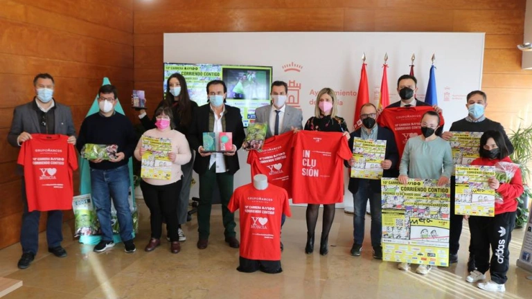 La concejala de Mayores, Vivienda y Servicios Sociales, Paqui Pérez, junto al vicealcalde Mario Gómez y el titular de la Concejalía de Cultura, Turismo y Deportes, Pedro García Rex, acompañados por el presidente de ASSIDO, Victor Martínez, usuarios de la asociación y del director de Comunicación de la Federación de Atletismo de la Región de Murcia, Adrián Bonache, han presentado este jueves esta iniciativa solidaria que va a contar con diferentes pruebas cronometradas según categorías, desde la carrera absoluta, cronometrada con sistema electrónico de chip; hasta las pruebas deportivas con más pequeños, con el objetivo de fomentar el deporte base.