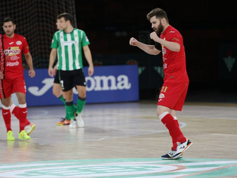 ElPozo Murcia Costa Cálida visitaba a un Real Betis Futsal en apuros en el partido que ponía el colofón a la Jornada 8 de Primera División. Después de ganar a Barça, Jaén FS y Mallorca Palma Futsal, el equipo de Javi Rodríguez llegaba con la flecha apuntando hacia arriba al Pabellón de San Pablo. Y con esa inercia, apenas un minuto tardaron en colocarse con ventaja en el marcador, por medio, precisamente, de su jugador más enchufado, Taynan. El equipo jamonero es otro desde que el brasileño, internacional por Kazajistán, ha regresado a las canchas. Cuando las cosas funcionan, la moneda suele caer de tu lado. El tiro de Taynan, mordido, suave, se envenenó al tocar en Piqueras y despistó por completo a Raúl Sánchez. El Real Betis Futsal atraviesa complicaciones en la portería, jugando con el portero del filial ante las ausencias del argentino Sarmiento y del eslovaco Marek Karpiak. Y lo cierto es que Raúl Sánchez no tuvo su mejor día contra ElPozo Murcia Costa Cálida.