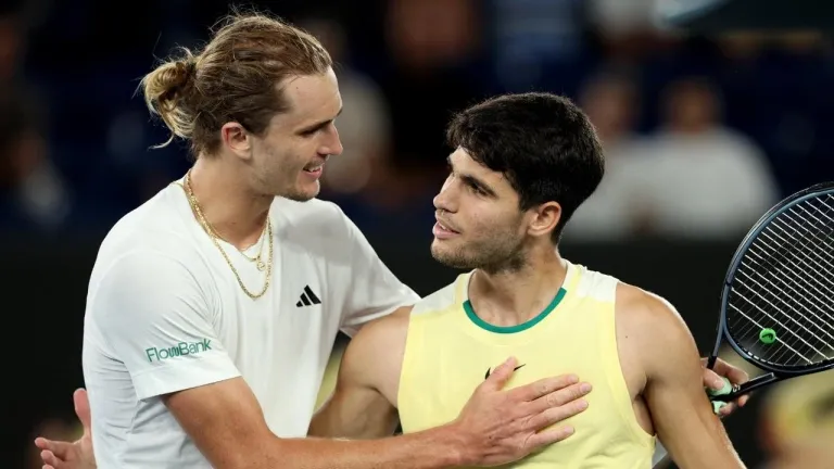 El alemán Alexander Zverev (n.6) acabó con el español Carlos Alcaraz (2), por 6-1, 6-3, 6-7(2) y 6-4, en tres horas y cinco minutos, en los cuartos de final del Abierto de Australia.