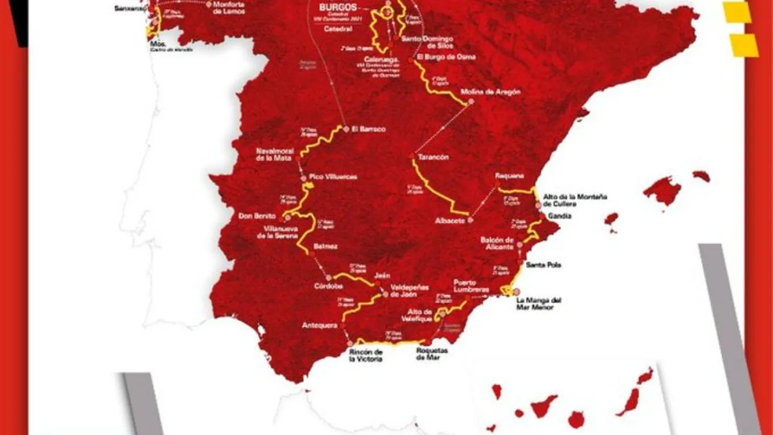 Entre los monumentos 21 jornadas que sumarán un total de 3.336 kilómetros, donde la montaña, los finales con alicientes próximos a meta y los puertos inéditos seguirán marcando la filosofía de la Vuelta, en busca de la innovación y el espectáculo deportivo hasta el último kilómetro.