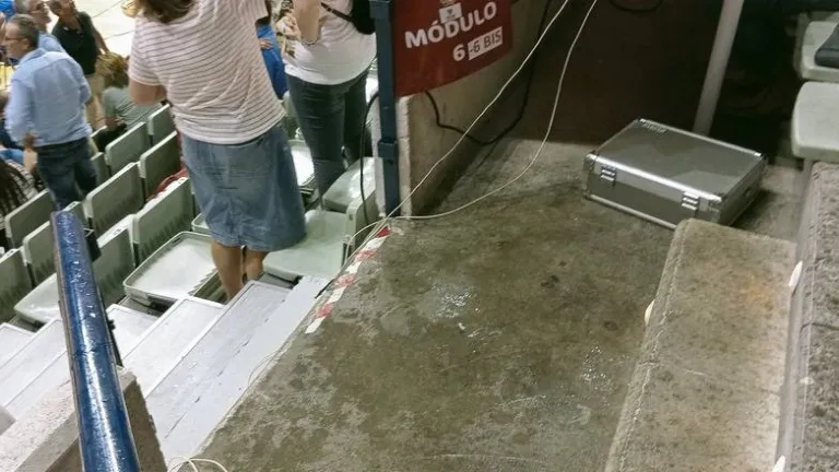 Nada más lejos de la realidad ya que el Palacio se ha convertido en este penúltimo partido de la temporada como local de los unviersitarios en una auténtica olla a presión que ha provacado algunos gritos de protesta de los aficionados. Todo este se ha compicado más todavía cuando, sobre las siete de la tarde, durante la disputa del tercer cuarto y en plena remontada local, ha comenzado a diluviar sobre Murcia y, como consecuencia de las goteras existentes en la instalación, ha comenzado a caer agua sobre las gradas y sobre el lugar de trabajo de los medios de comunicación poniendo en peligro la integridad de las personas. Cuando todo esto sucedía el concejal, que había asistido al partido para entregar el premio del concurso de triples y recoger la nueva camiseta del club en la que figura el nombe de Murcia, se había marchado del Palacio, previsiblemente para atender a otras cuestiones relacionadas con su concejalía. También estuvo en palco de autoridades el candidato del Partido Popular a la alcadía y alcalde durante seis años, José Ballesta, Quien debió tomar nota de las deficiencias de una instalación obsoleta y que debe tener una profunda remodelación en un futuro inminente. Murcia no merece un Palacio como el que ahora mismo tiene.