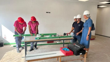 Las obras están siendo realizadas por 37 alumnos-trabajadores menores de 30 años (32 hombres y 5 mujeres) del Programa Mixto de Empleo y Formación ‘Edificación Sostenible II' de las especialidades de albañilería, pintura, climatización y carpintería. Actualmente, se está ejecutando la instalación de tuberías de climatización, estando ya finalizados los conductos y colocadas las unidades interiores, el montaje de las puertas de paso previamente fabricadas, la realización de mobiliario, la terminación de falsos techos y los acabados de pintura.