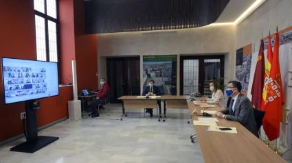 El alcalde de Murcia, José Ballesta, junto a la concejala de Educación y Escuelas Infantiles, Belén López, presentó esta mañana a los directores de los centros educativos del municipio el programa educativo ‘Murcia Mi Ciudad Enseña’ para el curso 2020/2021, que ha sido adaptado a la situación COVID-19 y engloba más de 120 actividades al aire libre y virtuales.