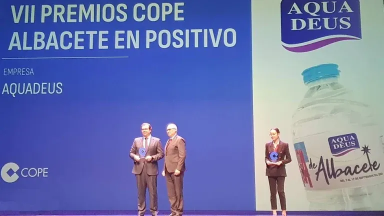 Aquadeus, empresa de agua mineral natural e integrada en Grupo Fuertes, ha sido galardonada en los premios 'Albacete en positivo', organizados por la Cadena Cope por su compromiso, solidaridad y apoyo a la provincia castellanomanchega.