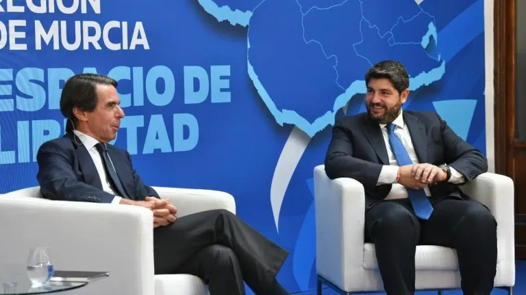 Aznar ha hecho estas declaraciones acompañado del presidente del Gobierno murciano y del PP regional, Fernando López Miras, en el diálogo económico titulado 'Región de Murcia-Espacio Libertad' que ha tenido lugar este viernes en el Casino de Murcia y que ha contado con la asistencia de distintas personalidades del ámbito empresarial y social de la Comunidad.