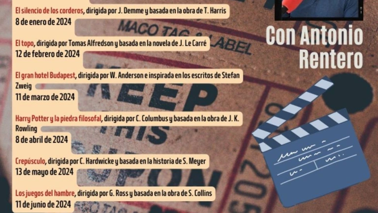 El club alternará filmes clásicos con otros modernos y tiene programadas nueve sesiones. Así, analizará ‘Matar a un ruiseñor’, dirigida por Robert Mulligan y basada en la novela de Harper Lee; ‘El nombre la rosa’, dirigida por J. Arnaud, adaptación de la obra de Umberto Eco; ‘Drácula’, en la versión de F. F. Coppola, basada en la novela de Bram Stoker; ‘El silencio de los corderos’, dirigida por J. Demme y basada en la obra de T. Harris; ‘El topo’, dirigida por Tomas Alfredson y basada en la novela de J. Le Carré; ‘El gran hotel Budapest’, dirigida por W. Anderson e inspirada en los escritos de Stefan Zweig; ‘Harry Potter y la piedra filosofal’, dirigida por C. Columbus y basada en la obra de J. K. Rowling; ‘Crepúsculo’, dirigida por C. Hardwicke y basada en la historia de S. Meyer; y ‘Los juegos del hambre’, dirigida por G. Ross y basada en la obra de S. Collins.