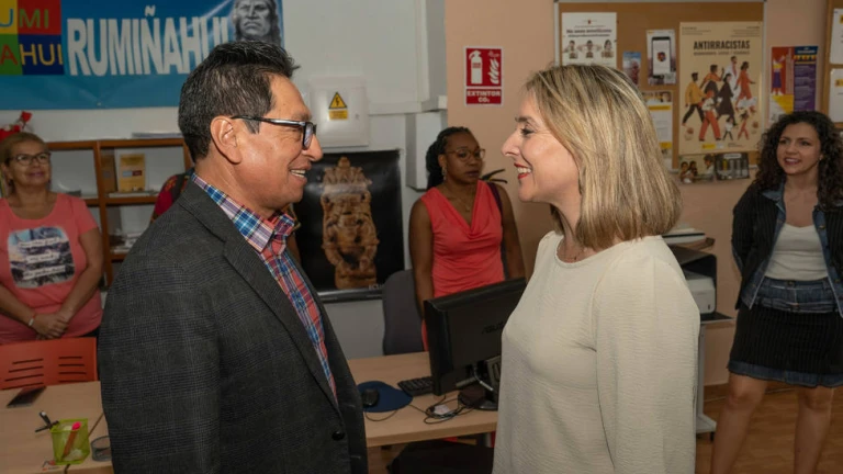 La titular de Política Social conoció el trabajo de la Asociación Rumiñahui, y junto al presidente de la asociación, Vladimir Arturo Paspuel, recorrió sus instalaciones. Destaca la labor que esta entidad viene realizando a través de los diferentes programas que desarrolla, destinados a la lucha contra las desigualdades y la exclusión social.