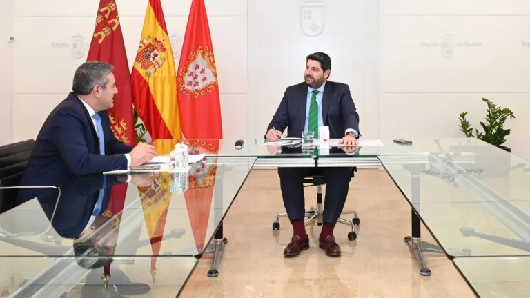 El presidente del Gobierno regional, Fernando López Miras, se reunió hoy en el Palacio de San Esteban con el alcalde de Alcantarilla, Joaquín Buendía, para analizar la evolución de este y otros proyectos prioritarios en el municipio. Algunas de esas iniciativas sobre la mesa fueron la agilización de la integración de Alcantarilla en el Área Metropolitana de Murcia o la puesta en marcha del nuevo parque urbano inundable, que limitará las escorrentías generadas por las lluvias torrenciales.