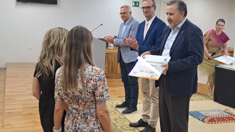 El consejero en funciones de Educación, Formación Profesional y Empleo, Víctor Marín, entregó las placas acreditativas a los centros y destacó que “la Región ha experimentado un crecimiento constante en la participación de centros educativos acreditados en el marco del plan Erasmus+. Este éxito es resultado del respaldo de la Consejería y el creciente interés de la comunidad educativa en participar en proyectos de movilidad, promover la excelencia a través de la internacionalización y el intercambio de conocimientos”.