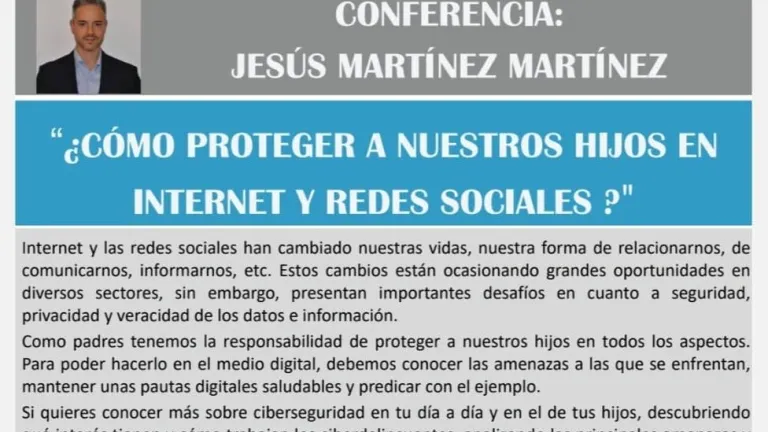 La Escuela para Familias, de la Consejería de Educación, Formación Profesional y Empleo, ha programado para el miércoles 3 de mayo la charla gratuita ‘¿Cómo proteger a nuestros hijos en internet y redes sociales?’, que ofrecerá el ingeniero en Informática Jesús Martínez.