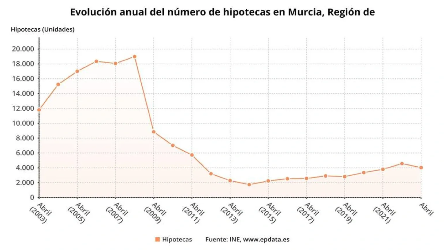 En detalle, en la Región se firmaron en abril 899 hipotecas sobre fincas de cualquier clase, con un capital prestado de 77 millones de euros. De ese total, 24 son fincas rústicas (3,5 millones de euros prestados) y 875 son fincas urbanas (73,5 millones).