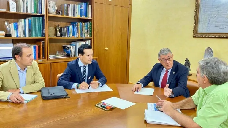 El consejero, acompañado por el director general de Ordenación del Territorio, José Tomás Bernal-Quirós, se reunió esta mañana en la sede de la Confederación con su presidente, Mario Urrea, y con el comisario de Aguas, Francisco Javier García.