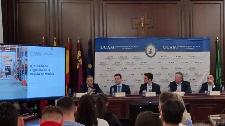López ha hecho estas declaraciones en el marco de las II Jornadas de Logística de la Región de Murcia, organizadas por el Grado de Ingeniería Civil de la UCAM, a las que también asistieron directivos de grandes empresas como Primafrio, Caliche, ESP Solutions, Estrella de Levante, Soltec, Embargos a lo Bestia y Libelium, directivos de la universidad y autoridades regionales.