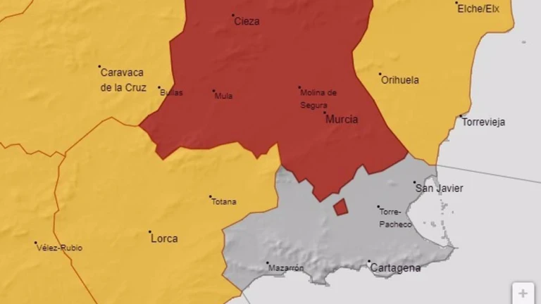 En esa misma franja horaria permanecerán en aviso naranja el Altiplano, el Noroeste, el Valle del Guadalentín, Lorca y Águilas, con lo que la mayor parte de la Región de Murcia se verá afectada por la ola de calor.