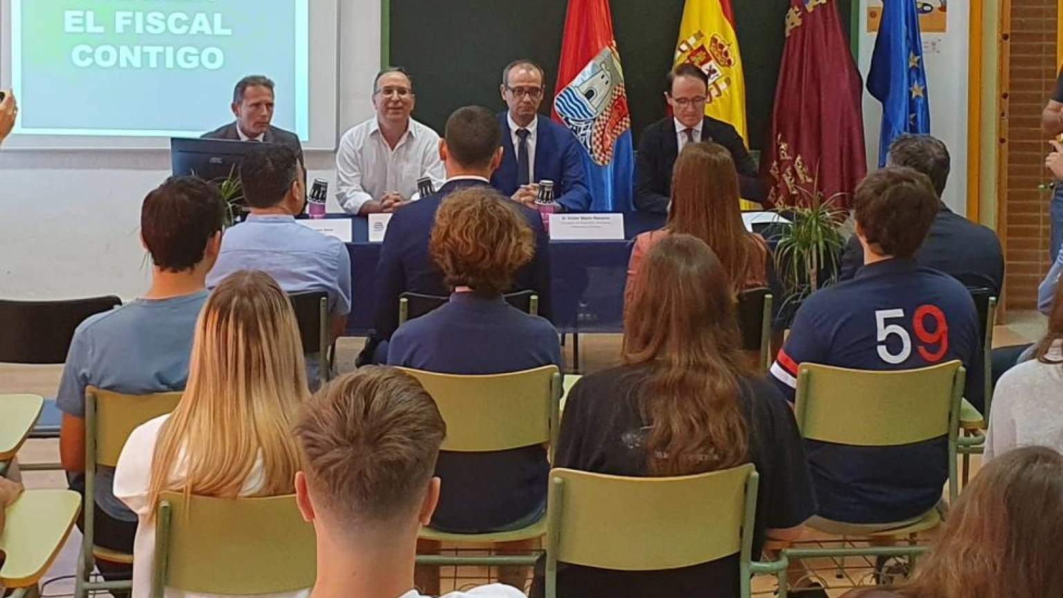 Más de 5.000 alumnos y profesores de centros educativos de la Región de Murcia asisten este curso a las charlas ‘El fiscal contigo’, programa que desarrolla la Consejería de Educación, Formación Profesional y Empleo, en colaboración con la Fiscalía de la Región de Murcia, con el objetivo de dar a conocer las funciones de la figura del fiscal como responsable de la defensa de los derechos de todos los ciudadanos, incluidos los menores.