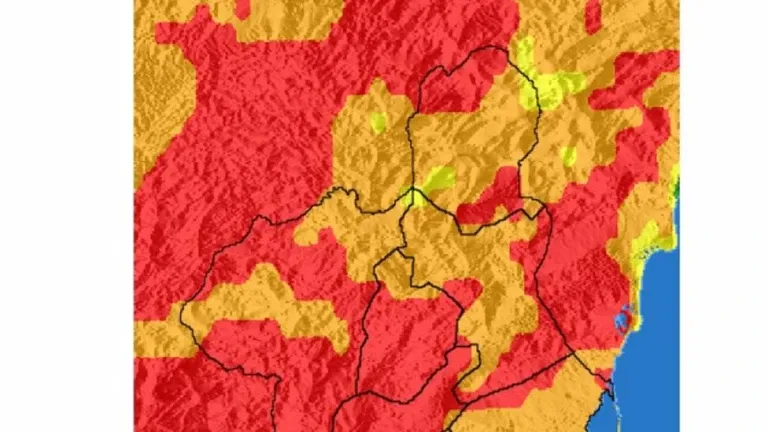 En concreto, es extremo en la Cuenca de Mula, Guadalentín y Noroeste; muy alto en el Altiplano, Litoral este y Vega Alta-Ricote-Murcia; y alto en el Litoral oeste, según fuentes del Centro de Coordinación de Emergencias consultadas por Europa Press.
