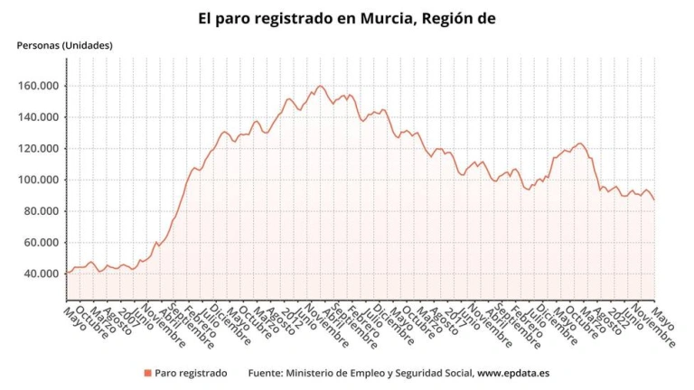 En lo que respecta al paro masculino, este se situó en 32.045 personas en la Región, mientras que el femenino alcanzó un total de 53.180. El número de parados menores de 25 años ascendió a 7.811.