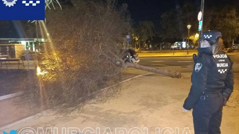 Así, desde las 10.30 hasta las 16 horas, la Policía Local ha recibido 73 avisos relacionados con la alerta amarilla por vientos como caída o desprendimiento de ramas en calle Floridablanca, Gran Vía, Intendente Jorge Palacios, avenida de La Inmaculada, Ronda Norte, avenida Vicente Aleixandre, plaza Noria de los Felices y plaza Antonio Pérez Crespo de Murcia; y avenida de la Constitución y avenida Príncipe de Asturias en Monteagudo y avenida Reino de Murcia de Zarandona,