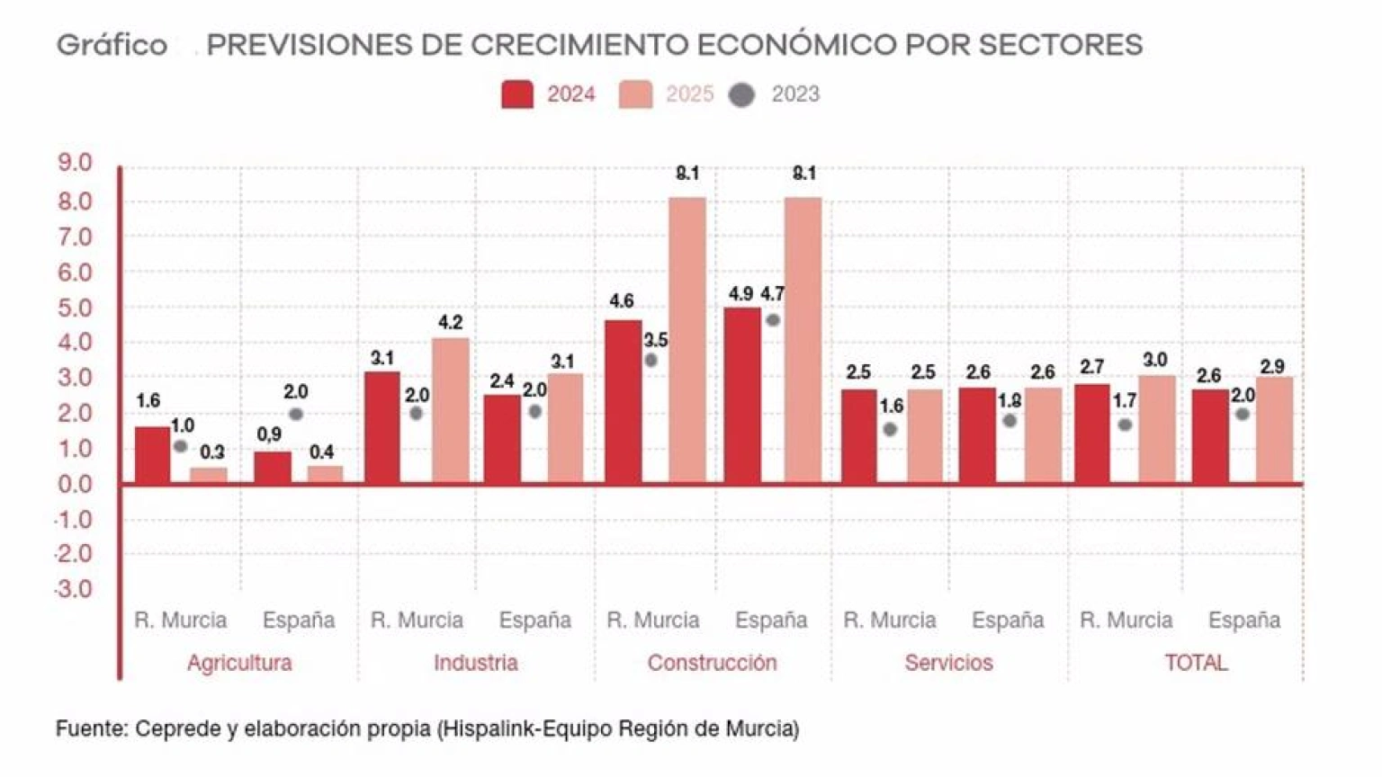 La Cátedra de Competitividad del Colegio de Economistas y el grupo de trabajo integrado por investigadores de la Universidad de Murcia (UMU)señalan que la previsión de crecimiento para el trienio 2023-2025 del PIB regional es del 2,5%, que coincide con la del conjunto nacional.