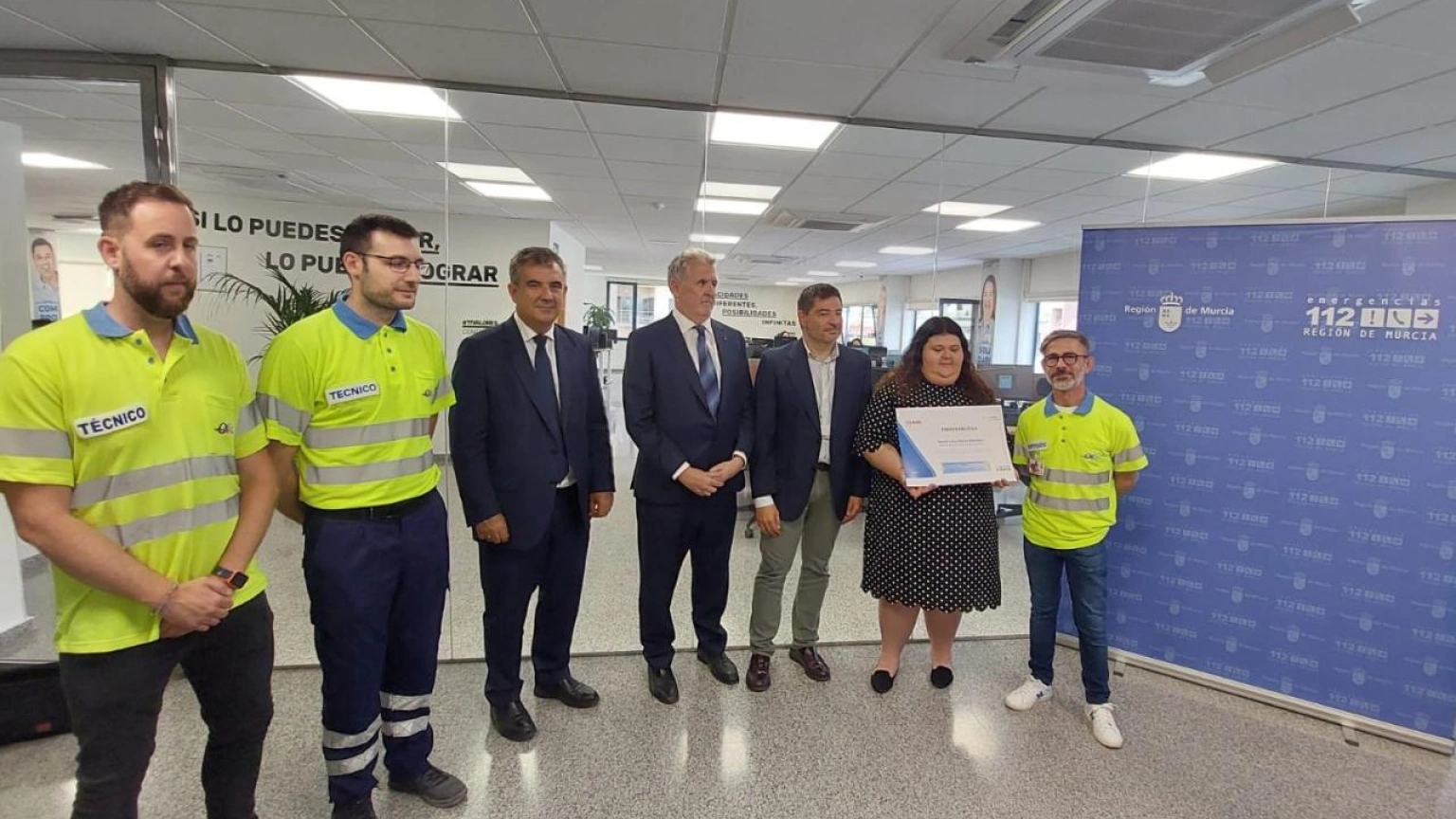 Al acto de reconocimiento asistió el consejero de Medio Ambiente, Mar Menor, Universidades e Investigación, Juan María Vázquez; el delegado territorial de la ONCE (grupo empresarial al que pertenece Ilunion Emergencias), Juan Carlos Morejón; el director de desarrollo de negocio de la empresa, José Luis García Martí; el director general de Seguridad Ciudadana y Emergencias, Fulgencio Perona;el director gerente del Servicio de Atención a Urgencias y Emergencias Sanitarias 061, Francisco Celdrán; y el jefe de explotación de Ilunion, Carmelo Cabañero.