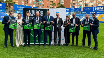 UCAM Murcia CF y CaixaBank han presentado la actividad solidaria 'Unidos por el balón', en la que más de 300 niños participarán el próximo 10 de abril en Be Soccer La Condomina
