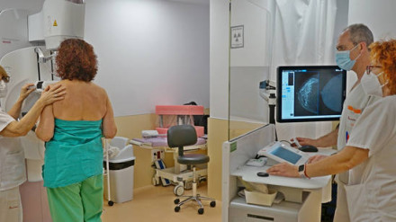 A la izquierda el doctor Pablo Conesa y a la derecha el doctor García Solano. Se encuentran en las instalaciones del servicio de anatomía patológica del hospital Santa Lucía