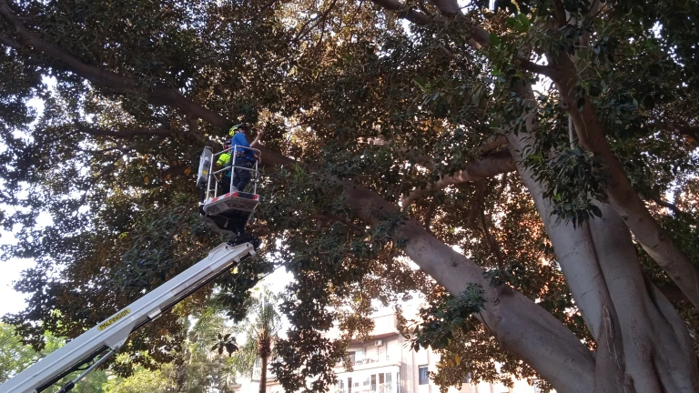 Las altas temperaturas en una época que no es su tiempo o un pico de temperaturas exageradamente alto son factores que juegan en contra del ficus y que puede ocasionar importantes daños en las ramas, así como su desprendimiento. Según Moisés Alcántara, técnico de la empresa malagueña, “tan negativo es para el ficus estar a 25 grados en épocas del año que no se corresponden como alcanzar 40 grados durante varios días en los meses de verano”. En este sentido, han podido confirmar que los 10 ficus se encuentran en óptimas condiciones y cuentan con un buen estado de salud. Según Alcántara, “nos hemos llevado una grata sorpresa porque hace dos o tres años empezaron a sufrir una serie de síntomas de los que, aparentemente, se están recuperando perfectamente”.