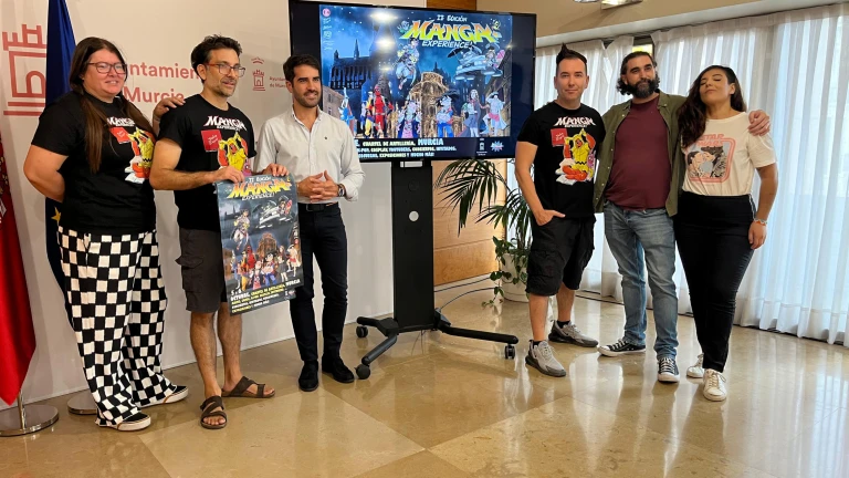 El concejal de Cultura e Identidad, Diego Avilés, acompañado por el director del Manga Experiencie, Tony Fernández, y la coordinadora del mismo, Yolanda Castaño; junto con los creadores del cartel oficial Salva Espín, Jorge Gómez (3 Áncoras) y Gema Over, han presentado la II edición de 'Manga Experience', que se celebrarán los próximos días 5 y 6 de octubre y espera reunir a miles de aficionados a la cultura manga y al anime tras el éxito del pasado año.