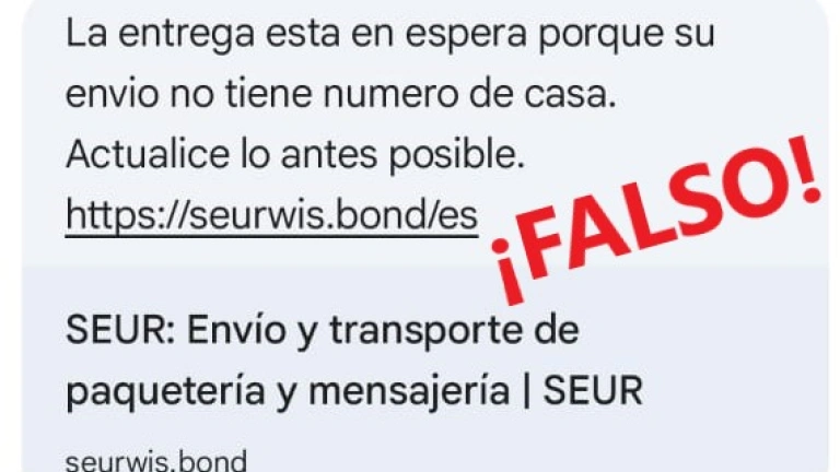 CONSUMUR ha tenido conocimiento de un SMS que suplanta a la empresa SEUR, en el que se informa al usuario de que “la entrega está en espera porque su envío no tiene número de casa. Actualice lo antes posible”. El mensaje incluye un enlace que, tras una inspección detallada, se comprueba que no corresponde a la dirección web oficial de la compañía. Este mismo método se utiliza suplantando a otras empresas como Correos o DHL.